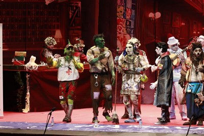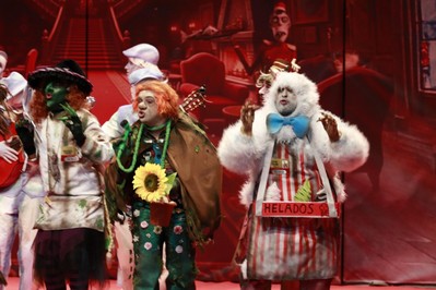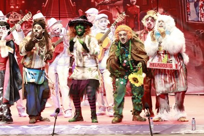 Los primeros en salir a escena, Los Lingartos. Rompen el hielo, por aquello de su disfraz del año pasado, de La sociedad de la nieve. Este año son los monstruos del Hotel Lisboa. ¿Product placement? O monstruos del lago de Valverde de Leganes. Buena presentación, con ritmo, con