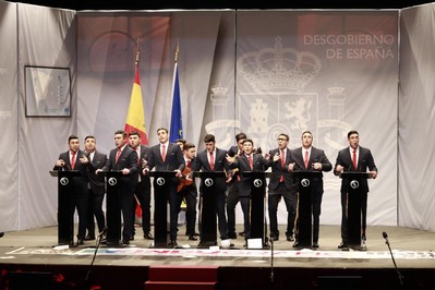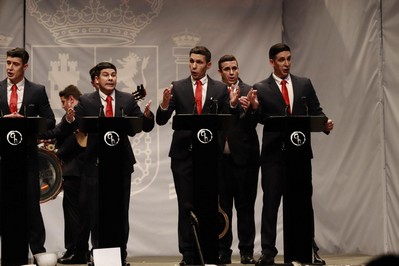 Los Chungos levantan el telón y…escenario a oscuras, que torna a rojo…para iluminarse y aparecer disfrazados de Pedro Sánchez. Ojo, que encarnar personajes le va y de qué manera a esta agrupación. Si hace años representaron a Trump, en 2026 lo hacen de su oponente, el presidente del Gobierno, de quien sacan todos los tópicos en la presentación. Primer pasodoble. Se queja Chungo Sánchez de que le llamen mentiroso…y la parodia del personaje es fantástica. Ahora entendemos cuando les preguntamos por el tipo que serían “más chungos que nunca”. El segundo pasodoble, para quejarse de que le llamen prepotente, y la guerra de