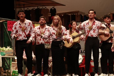 Debutan Los Deskaraos en esta noche de viernes. Abren actuación con dos componentes, guitarra y voz, en solitas en el centro del escenario, cantando flamenco. Vienen desde el mercadillo de Badajoz, donde se ganan la vida con su puesto. Muy jóvenes, con mucho Carnaval por delante. Varios componentes de Los Charramangueros, como Estefanía Linde, Nacho, Lucía, Andrea, Marta…Son trece en escena, más tres figurantes: no deben ser supersticiosos. Primer pasodoble a las críticas que recibieron nada más comenzar su historia como grupo, y para las dificultades que padecen los grupos jóvenes. Reclaman más apoyos. Segundo pasodoble para . Turno para los cuplés. En el primerol historia de su primo Johnny, que tenía dependencia de pantalla. El segundo para la forma extraña de conducir en Badajoz. Tanto como para despistarse con el móvil, y casi atropellar a su primo Johnny. En el popurrí, músicas calorras, muy adecuadas para el personaje. Más grupitos como este hacen falta, claro que sí.