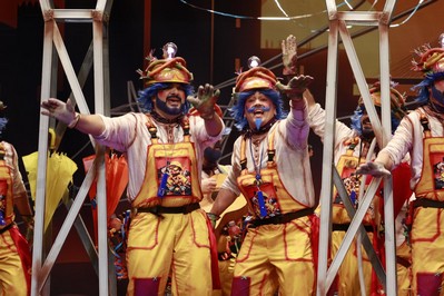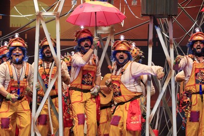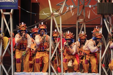 Será por aquello de que estamos en semifinales, será porque está la televisión…pero hoy comenzamos un poquito antes, dos minutos antes. Lorido explica lo de la fase de preliminares, cuantos pasan a la final…y venga, que se hace tarde. Los primeros, la murga con más chispa del COMBA 2026: Los Mirinda. Por aquello de ser electricistas…Y frescos en la entrada, haciendo alusión a las lluvias, que nos tienen haciendo gárgaras. Por cierto, echamos de menos al Bola, ¿qué ha pasado? Pasodobles, el primero al bullying. Vuelven a sacar a colación el hecho de que donde hay que educar a un niño, primeramente, es en casa. Pasodoble para los jóvenes que apoyan a la ultraderecha, a los que se les recuerda que en la dictadura no se vivía mejor. En los cuplés, el primero para Donald Trump y la invasión de Venezuela. Y la petición de los murgueros de que deje la guerra para después de los Carnavales. Segundo cuplé, para un
