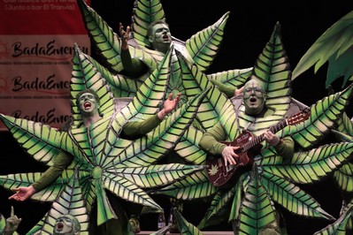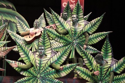 Cuarta murga de la noche, Los Rayanos, a caballo entre Badajoz y Olivenza. Mala hierba no, son la hierba buena…Eso sí, de uso terapéutico y medicinal. Vamos con el primer pasodoble. De nuevo los juegos con palabras esdrújulas (Paco Olivera, autor de la murga, es profesor de lengua). El tema, la violencia de género. El segundo, homenaje a los murgueros de antaño, los que son parte de la historia. En el primer cuplé salimos los Pacos. Los efectos de la hierba nos hacen apostar por la victoria de La Mascarada. Y lo cantan mirando a la ubicación que hasta ayer teníamos en el teatro. Hoy estamos en el otro lado del López. En el segundo, si antes han cantado a las murgas de antes, los protagonistas son los murgueros de ahora, con varios chistes. El popurrí es una sucesión constante de chistes relacionados con el tipo, desde María la Portuguesa hasta la música del supermercado de Juan Roig con la letra “Metadona”. Y aparecen los juegos con las palabras esdrújulas, por tercera vez. Muy buena actuación, nos ha hecho disfrutar a tope (en absoluto relacionado con el tipo). Pero una caladita no vendría mal. Qué pena haber dejado de fumar hace un año…