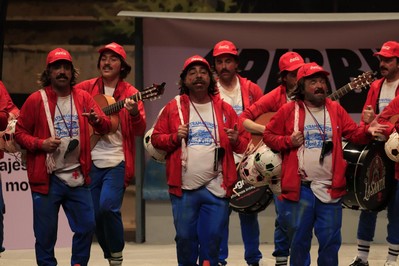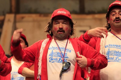 Valentín, entrenador infantil, ponen sobre las tablas todos los tópicos del fútbol base. Divertidísimos, como siempre. Y Cano espectacular arrastrando al público. Primer pasodoble, para Pedro Sánchez. Un tío chulo, como el pirulo. Y tras narrar todas las desgracias sufridas en su gobierno, rematan destacando su fama de cenizo. El segundo, para criticar las listas de espera. Una lesión de benjamines se trata en juveniles. Son los maestros de los pasodobles humorísticos. Primer cuplé para los pistachos, sabor que está de moda. Y compras una bolsa, y la mitad está cerrado. Segundo cuplé para el trastorno de TDA, y se despistan con facilidad. ¿Qué nos estaban diciendo? Que se compran una bolsa de pistachos y la mitad están todos cerrados. Genial detalle. En el popurrí, golpe tras golpe, risa tras rias, hasta en el minuto de silencio por su socio más antiguo. Termina el segundo tiempo para este equipo. Habrá que ver si tienen prórroga…el próximo viernes, en la final.