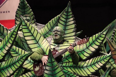 En los cuplés, el primero nos tocó de cerca: sale Paco Tabares. Los efectos de la hierba le llevan a apostar por la victoria de La Mascarada, y lo cantan mirando justo al sitio que ocupábamos hasta ayer en el teatro. Hoy, casualidades del destino, estamos en el otro lado del López. El Carnaval también tiene de eso.