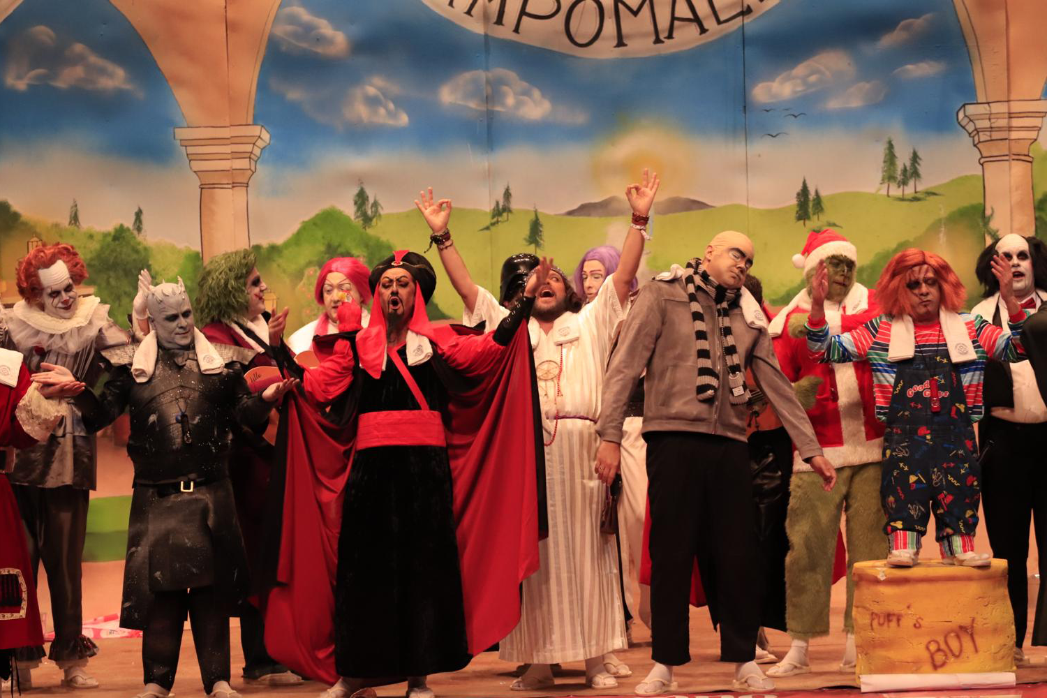 La noche continuará a las 22:30 horas con la final del concurso de murgas, donde ingenio, crítica y humor se darán cita en una de las citas más seguidas por los aficionados. Al Maridi, Marwan Chilliqui, Los Water Closet, Valentín, entrenador infantil, Gitano y de Badajó y Los Camballotas, en ese orden, se disputarán el honor de ser los campeones de murgas de este año.