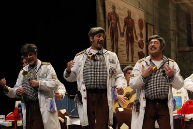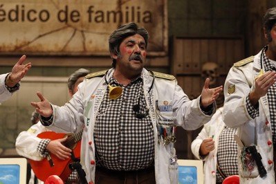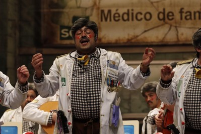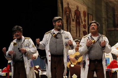 Dos y cuarto de la mañana cuando comienza la actuación de la última murga de la final, Los Camballotas. Menciones a los Sanguijuelas del Guadiana, pregoneros de este año, para refrescar la letra de la presentación de don Juan Andrés González Gaviria, su médico de familia. Nos recuerda al que encarnara Emilio Aragón, cruzado con el personaje de la Juani. Primer pasodoble para denunciar que se permita el terror en Palestina. Segundo para reclamar el pregón para Los Niños. Primer cuplé para una ensalada con remate previsible. Segundo cuplé para pedir la eutanasia para un ramillete de personas que al parecer no comparten sus ideales. Popurrí que empieza con el punteo a la guitarra de la melodía de la serie Médico de familia. Y ya solo queda esperar la decicisón del jurado, en este día de San Valentín, día de los enamorados. Del Carnaval.